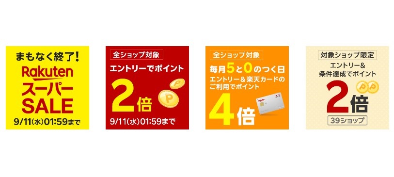 楽天スーパーセール、全ショップポイント2倍を開始 スーパーセールが終わる11日1時59分まで