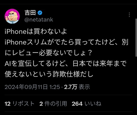 大物ガジェット系YouTuber「iPhone 16は買わないよ。日本では来年までAI使えないから」