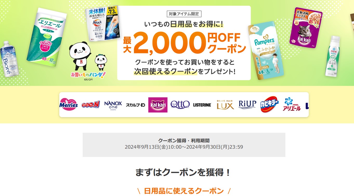 いつもの日用品をお得に!最大2,000円OFFクーポン