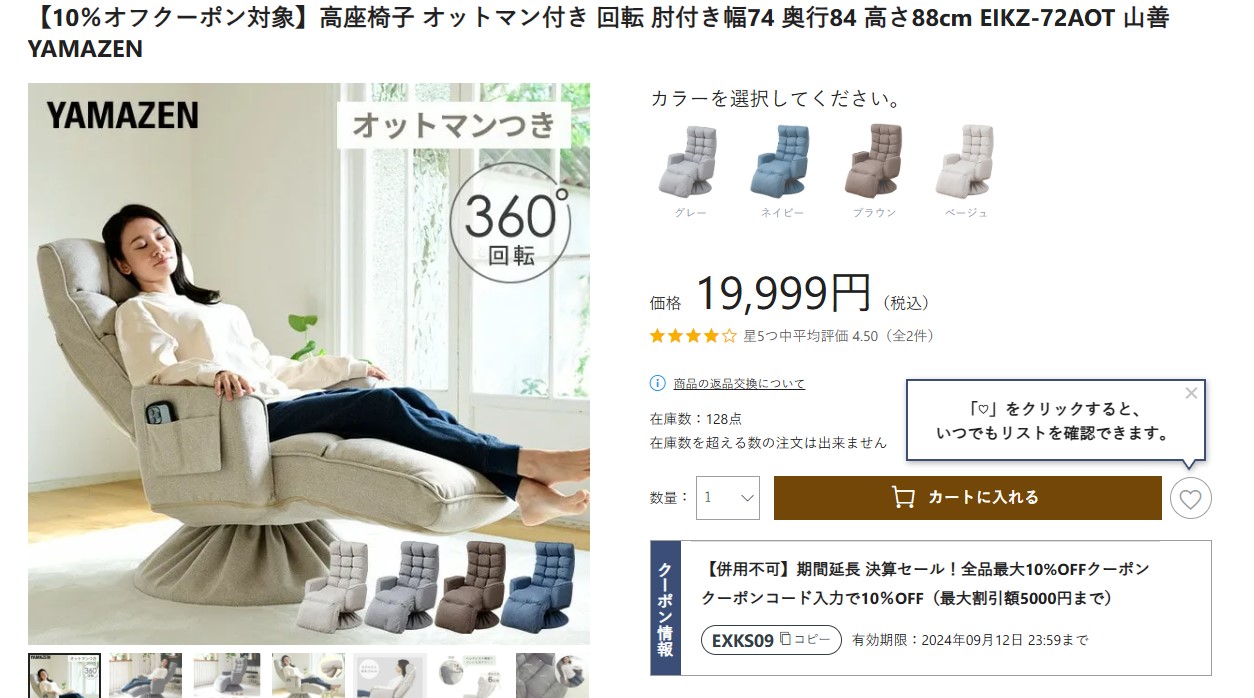キャスター付きのリクライニングソファが見つからん・・・