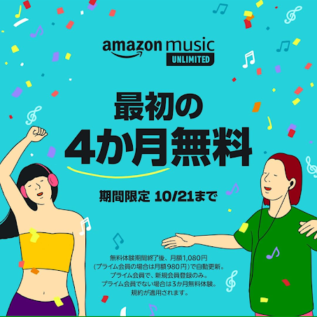 Amazon Music Unlimited 最初の4か月無料キャンペーン(10/21まで)