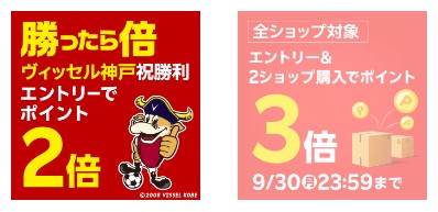 楽天市場、2ショップ購入でポイント3倍を9月30日まで開催 29日はサッカー勝利で2倍も