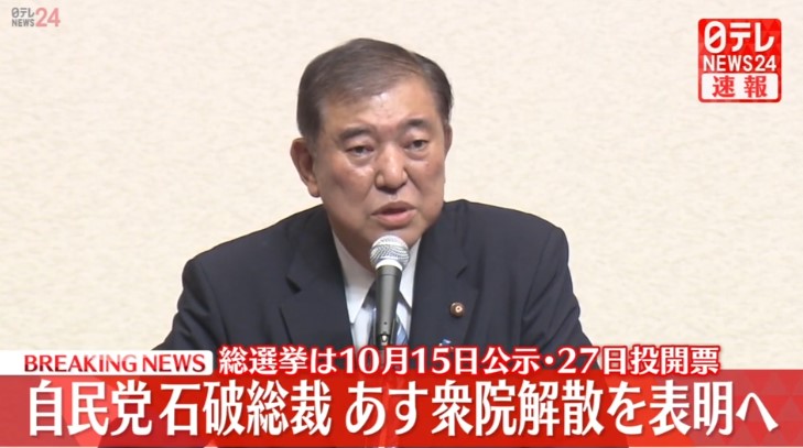 石破総裁、あす衆議院解散を表明 10月15日公示・27日投開票