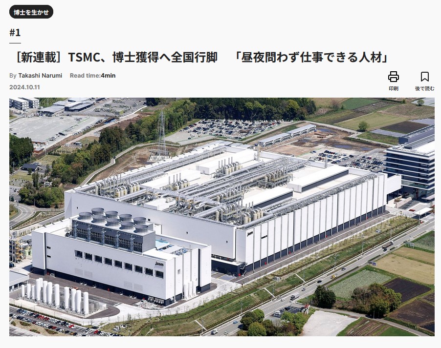 台湾・TSMC幹部「日本人は想定より働いてくれない。でも、博士号を取得する学生なら違うはず」 博士獲得へ全国行脚