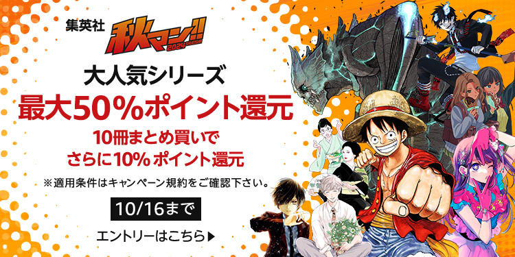 集英社「秋マン!! 2024」まとめ買いキャンペーン 最大50%ポイント還元・10冊まとめ買いでさらに10%ポイント還元(10/16まで)