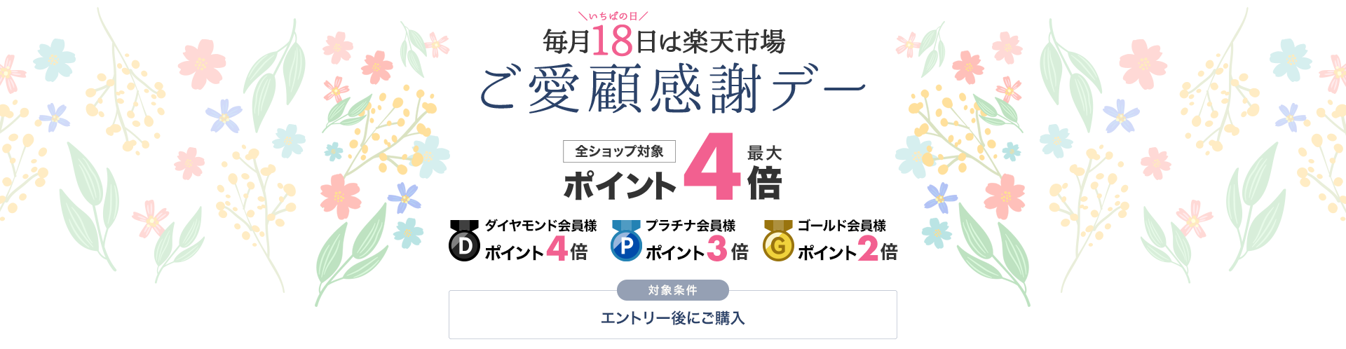 楽天市場「毎月18日は楽天市場の日 ご愛顧感謝デー ポイント最大4倍」を開催中