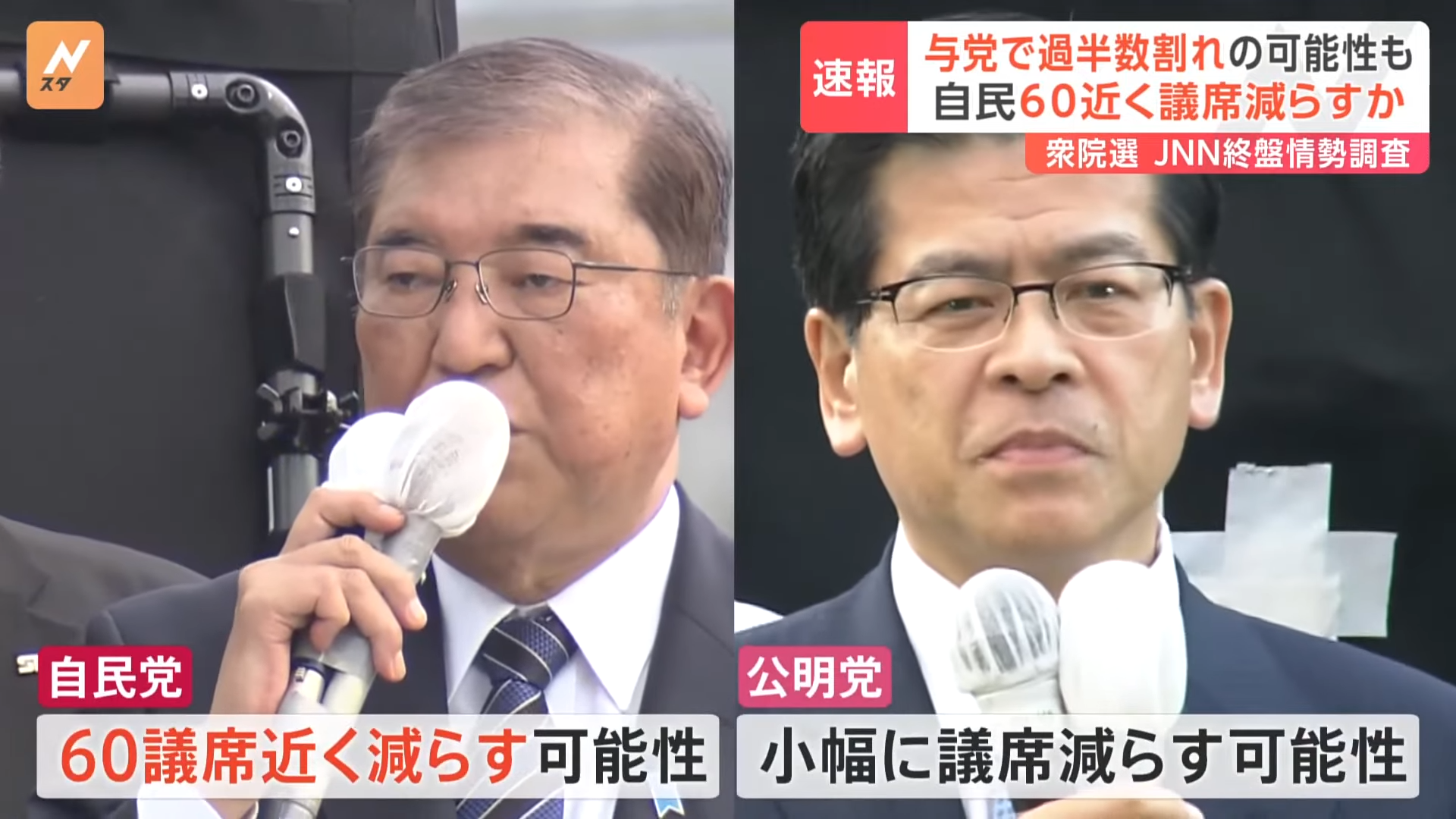 【速報】与党で過半数割れの可能性も 日本保守党は政党要件満たす見込み 衆院選JNN終盤情勢調査