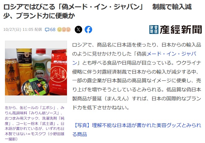 ロシアではびこる「偽メード・イン・ジャパン」 制裁で輸入減少、ブランド力に便乗か