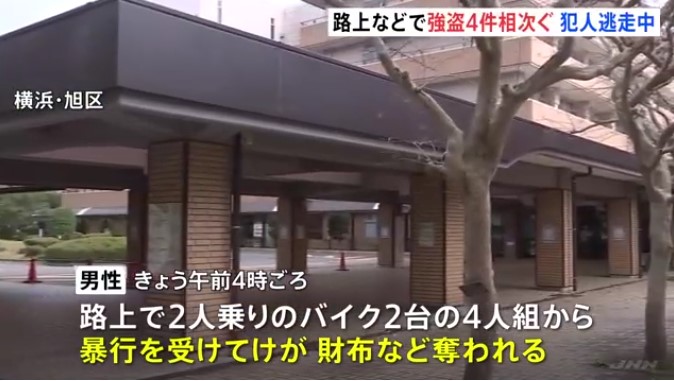 【速報】横浜市と東京・町田市の路上などで強盗4件相次ぎ2人けが バイク2台の4人組か 2時間あまりの間に半径7キロの範囲内で
