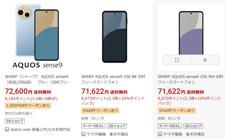シャープの最新スマホ「AQUOS sense9」、楽天市場で10%ポイント還元 楽天ヤマダでは5%オフクーポンも