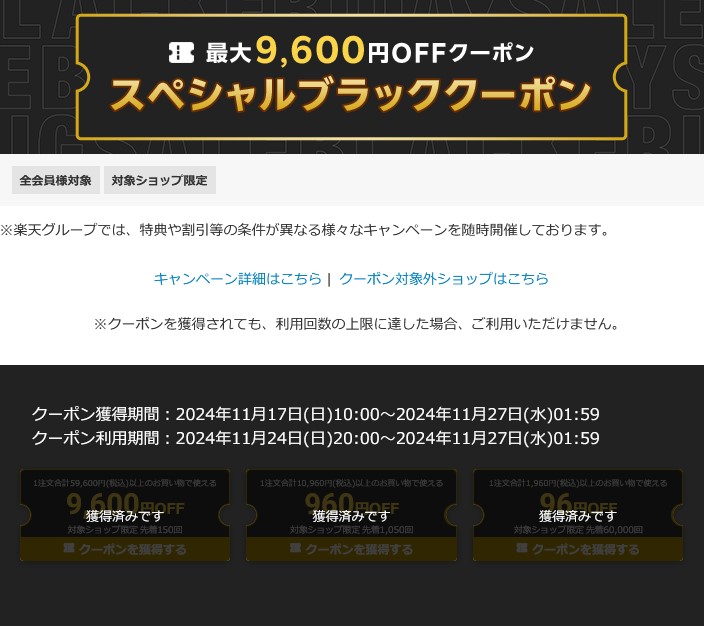 スペシャルブラッククーポン 最大9600円OFFクーポン
