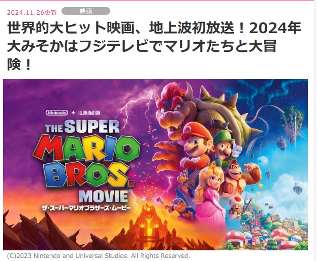 フジテレビ、大晦日19時から映画「ザ・スーパーマリオブラザーズ・ムービー」を放送 地上波初放送