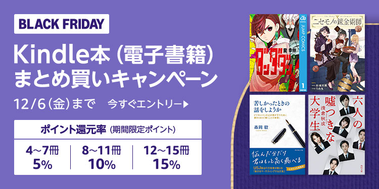 Kindle本まとめ買いキャンペーン 最大15%ポイント(1週目は11/29まで)