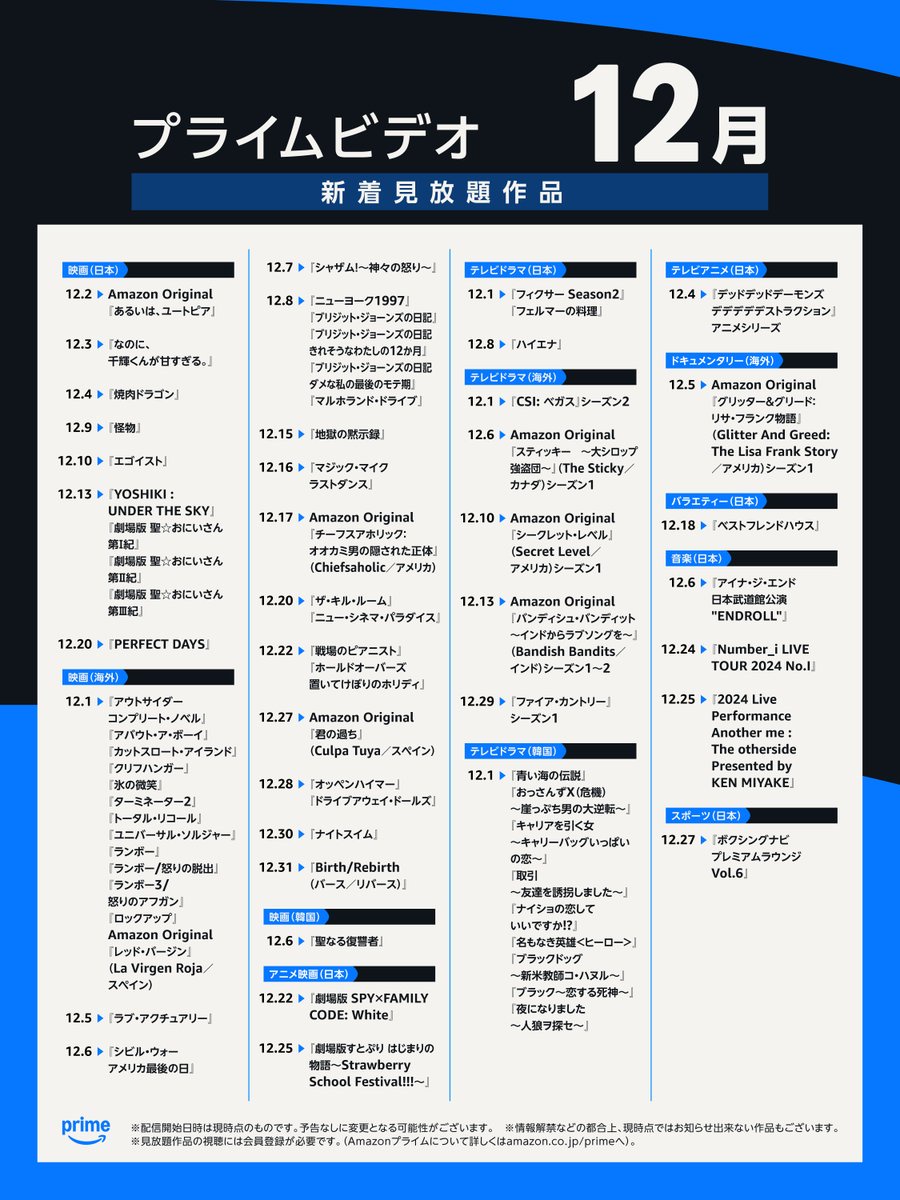 Amazonプライムビデオ、12月配信作品発表 「PERFECT DAYS」「怪物」「オッペンハイマー」「シビル・ウォー アメリカ最後の日」など