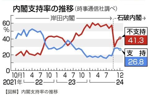 【悲報】石破内閣支持率、もうデッドラインwwwwww