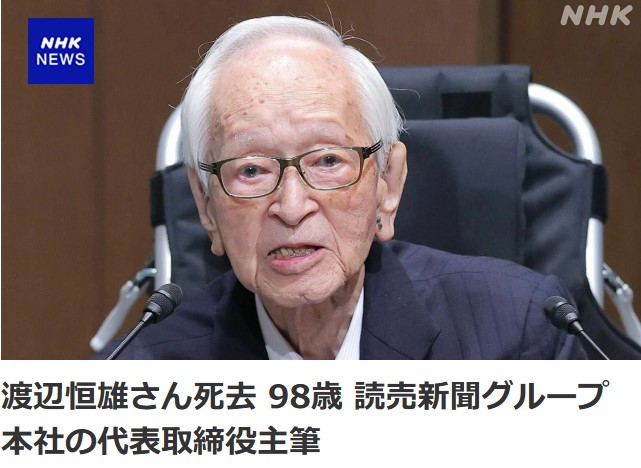 読売新聞グループ本社代表取締役主筆のナベツネこと渡辺恒雄氏が死去 98歳