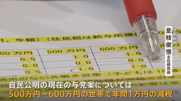 年収「103万円の壁」、自民・公明の「123万円」では年収500~600万円の世帯で年間1万円の減税効果しかない