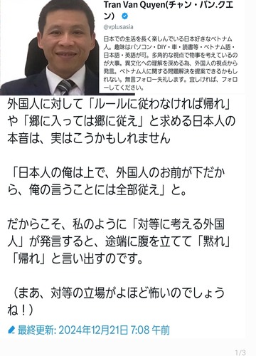 【正論】グエン「日本人がベトナム人をルールに従わせようとするのは、ベトナム人を下に見ているから」