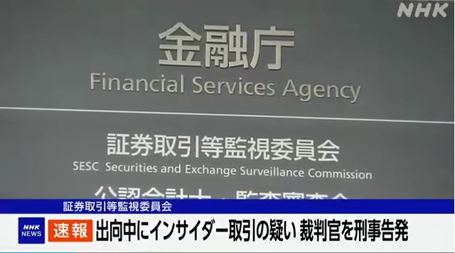 証券取引等監視委員会、インサイダー取引の疑いで金融庁出向中の裁判官・東証職員とその父親を刑事告発