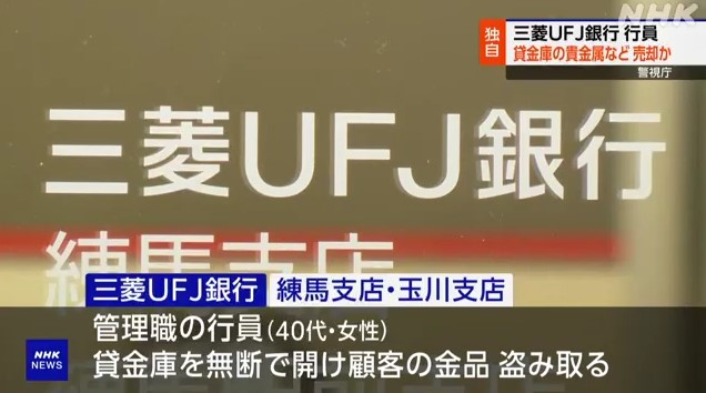 三菱UFJ銀行 貸金庫から金品窃取の行員 複数先で盗品売却か