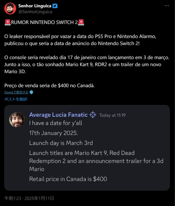 PS5 ProとNintendo Alarmoの発売日をリークしたリーカーが、Nintendo Switch 2の発表日を公開しました!