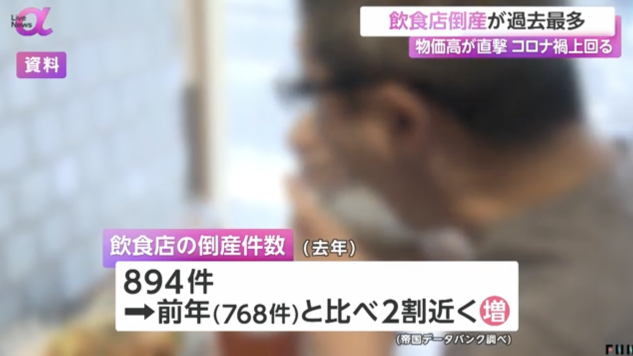 飲食店倒産が過去最多 物価高が直撃しコロナ禍上回る