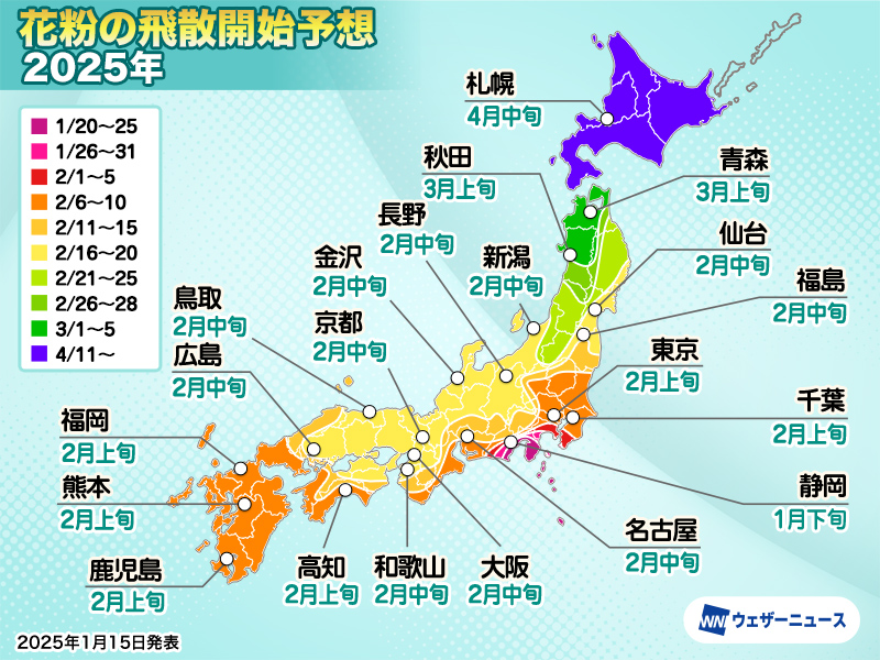 飛散開始がやや早い予想の所もあります。早めの対策を。