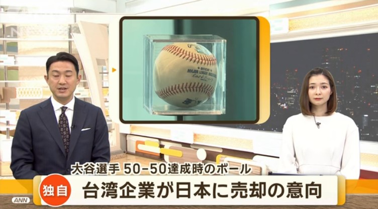 大谷翔平選手が「50−50」達成時のボールを台湾企業が日本に売却する意向