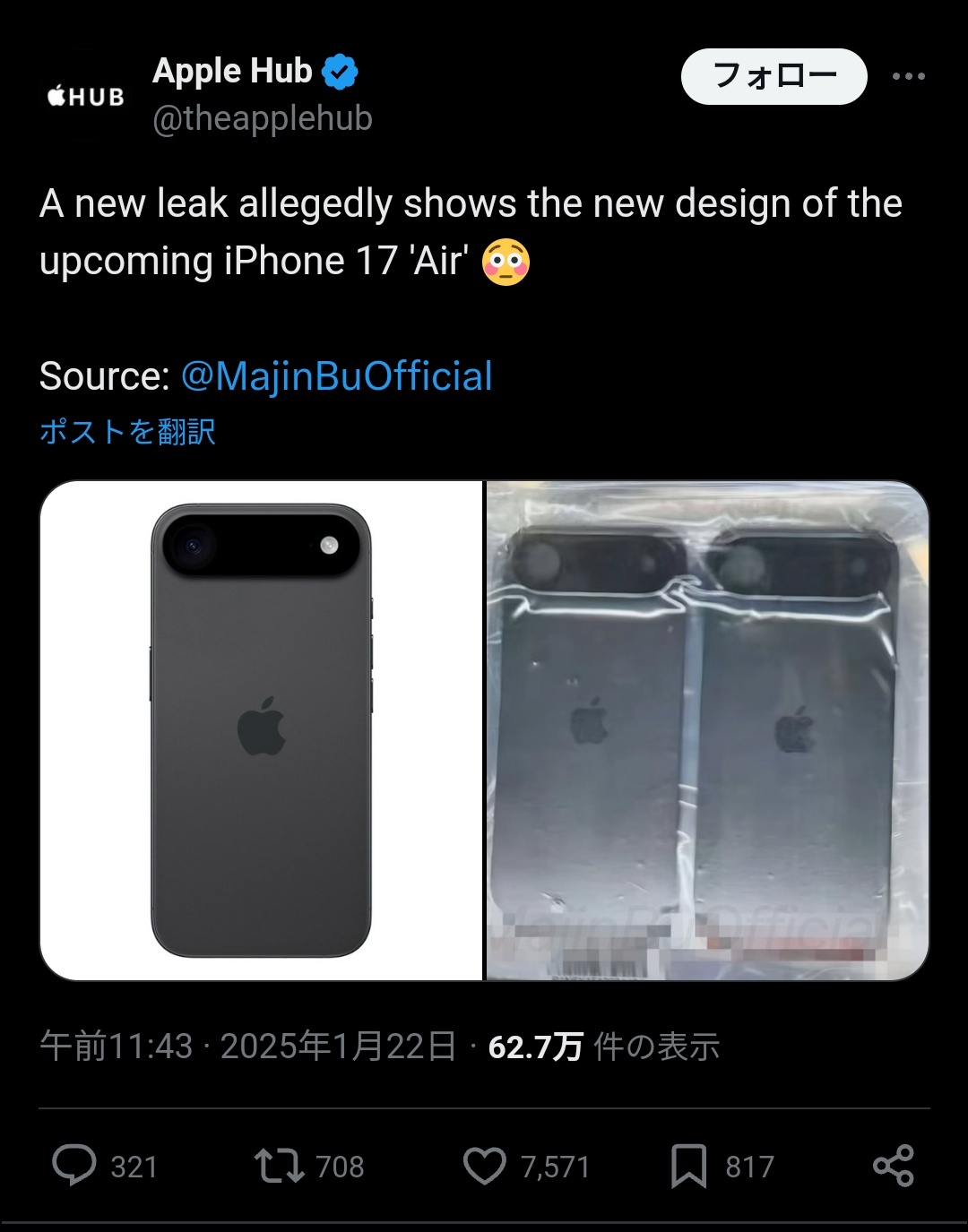 「iPhone 17 Air」の背面カメラ、「Pixel」みたいなデザインか