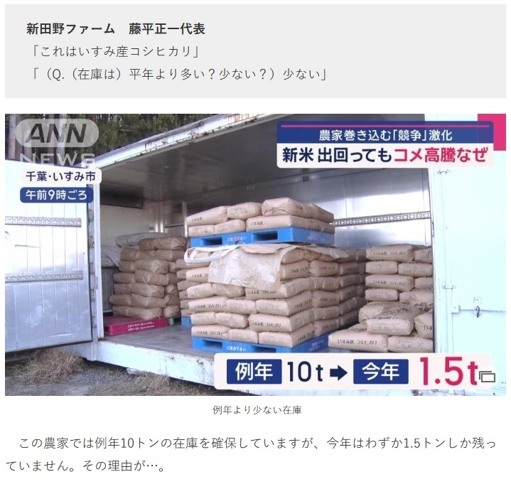米農家「コメの値上がりは3年くらい続くかも」「在庫は平年より少ない。中間業者(卸業者)が買い占めてる」