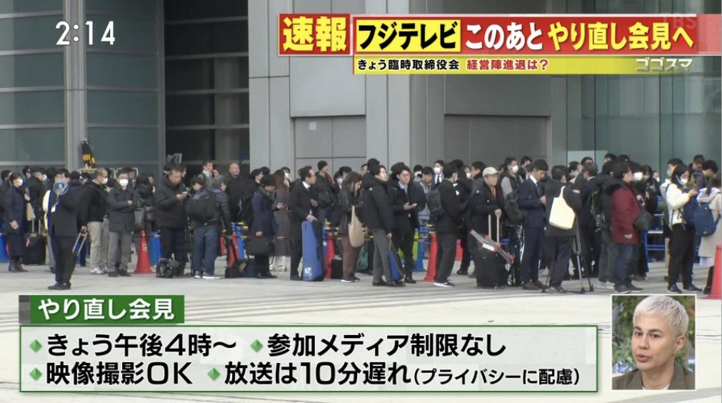 16時からのフジテレビのやり直し会見、出席者500人超 時間無制限で質問受ける方針