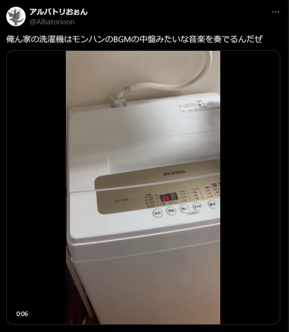 アイリスオーヤマの洗濯機、モンハンのBGMの中盤みたいな音楽を奏でる