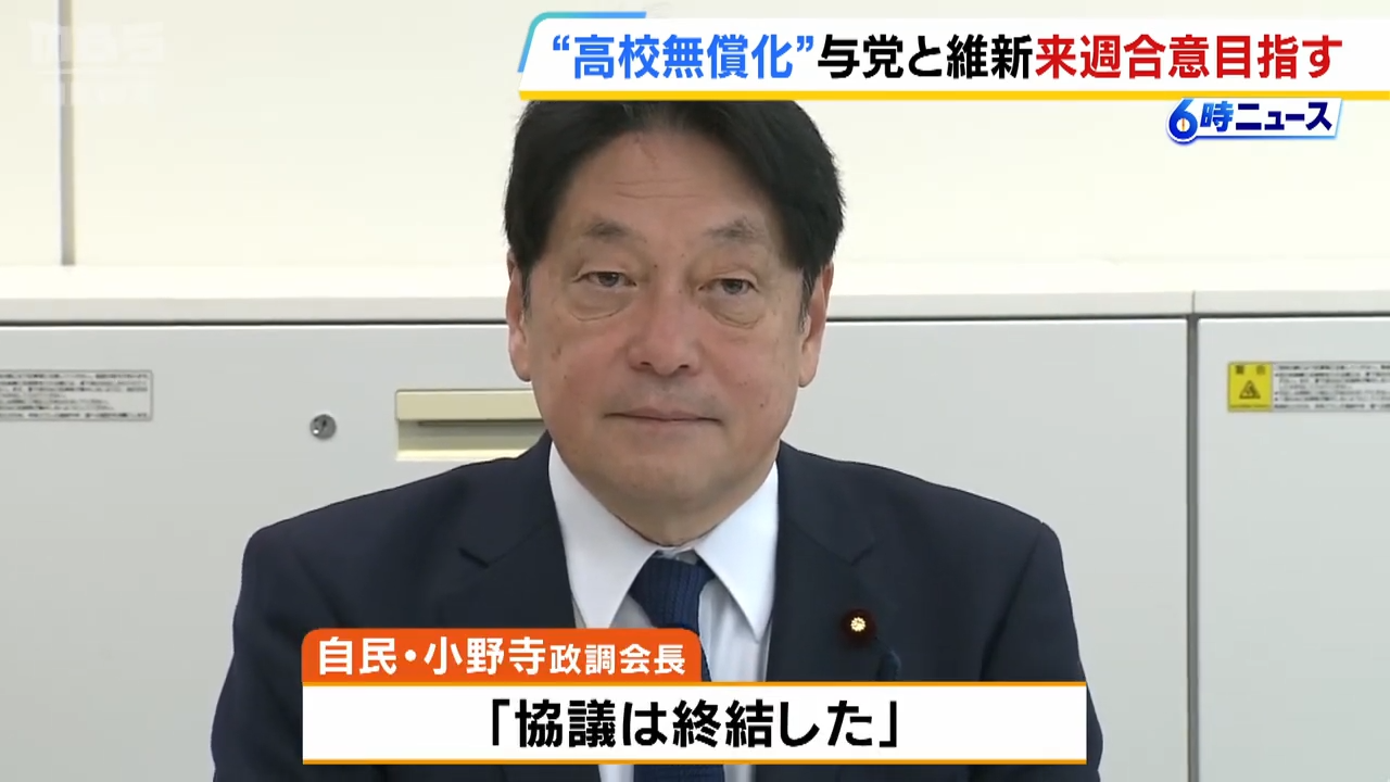 自民・公明・維新、政調会長間で予算案修正合意 高校無償化や社会保険料引き下げ 自民政調会長「良い内容」