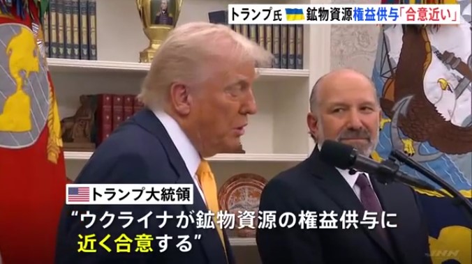 トランプ大統領、ウクライナに求めている鉱物資源の権益供与について「合意近い。合意しなければスターリンクからウクライナを遮断」