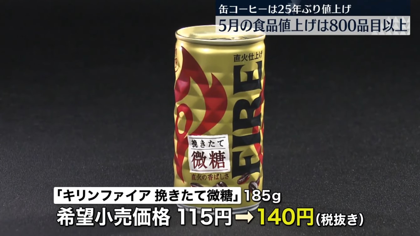 日本、値上げが止まらない 5月は飲料・食品中心に824品目値上げ 缶コーヒーが25年ぶりに値上げ