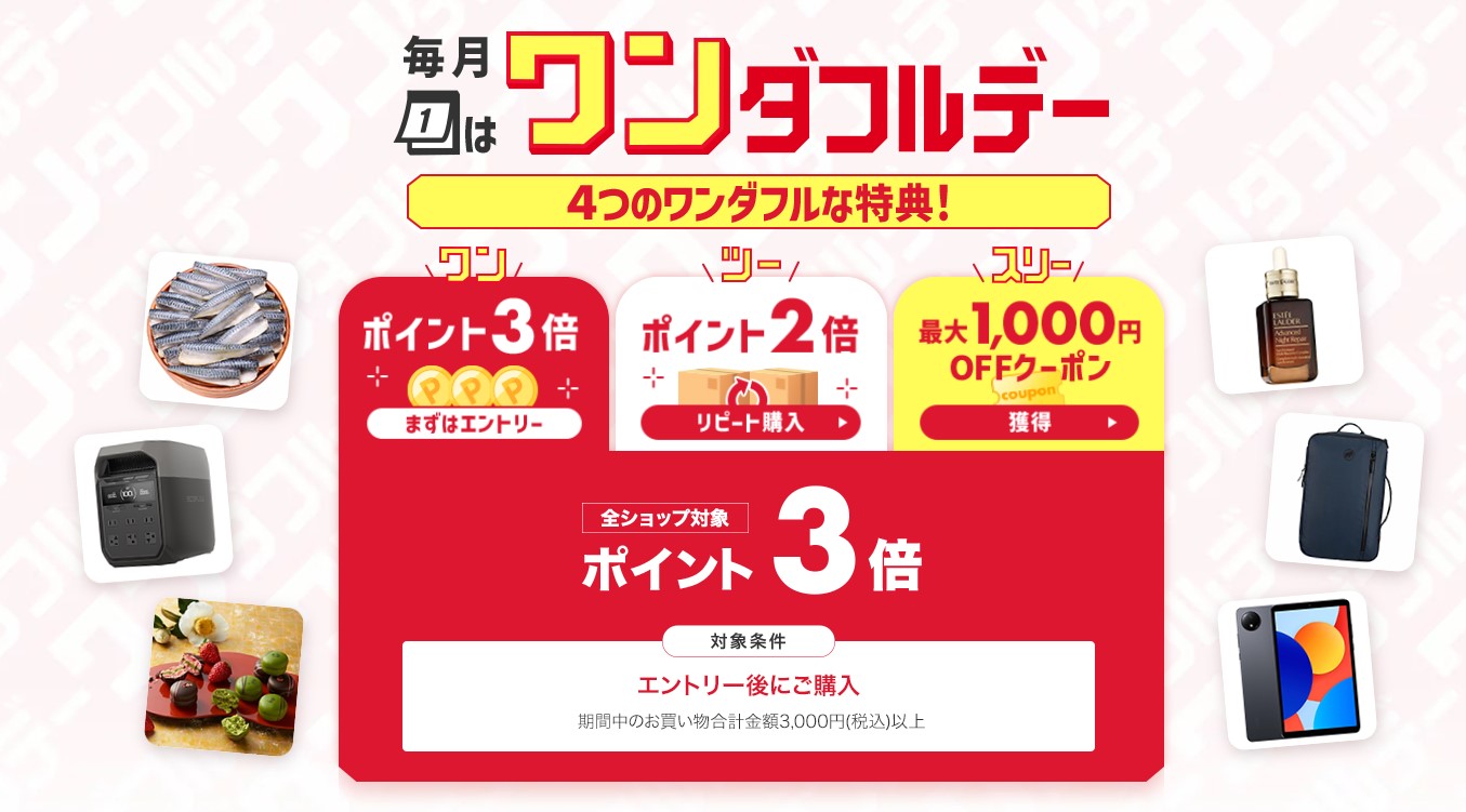 エントリーで全ショップポイント3倍!ワンダフルデー