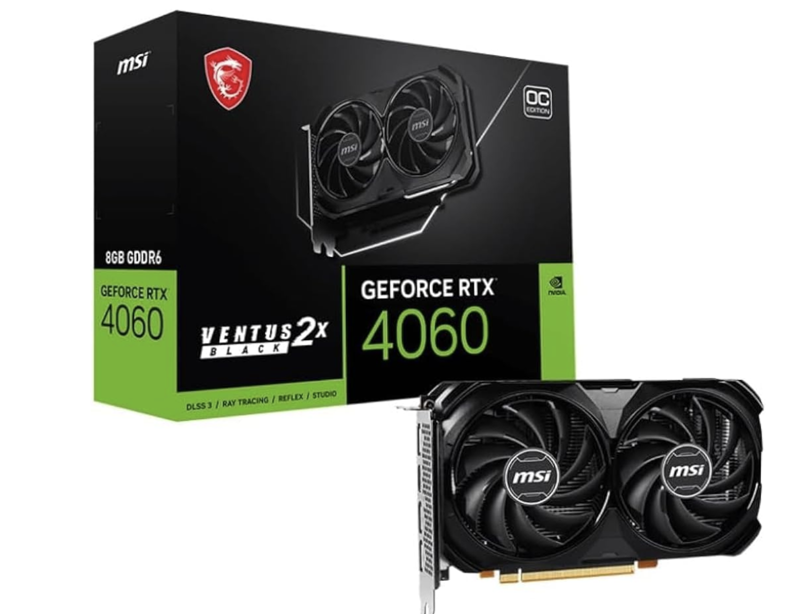 MSI GeForce RTX 4060 Ventus 2X ブラック 8G OC ゲーミンググラフィックカード – 8GB GDDR6X PCI Express Gen 4 128ビット 3X DP v 1.4a HDMI 2.1a (4K & 8K HDR対応)