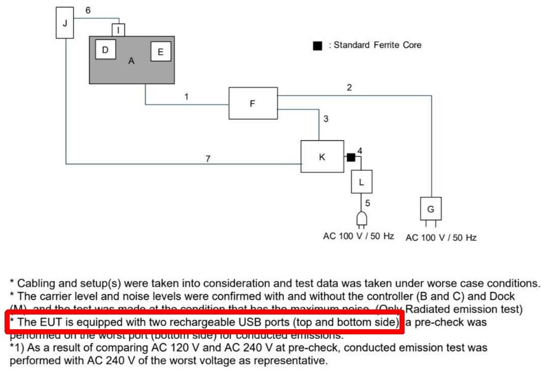 提出書類によると、Nintendo Switch 2 は下部の USB-C ポートまたは新しい上部の USB-C ポートのいずれかから充電できる。