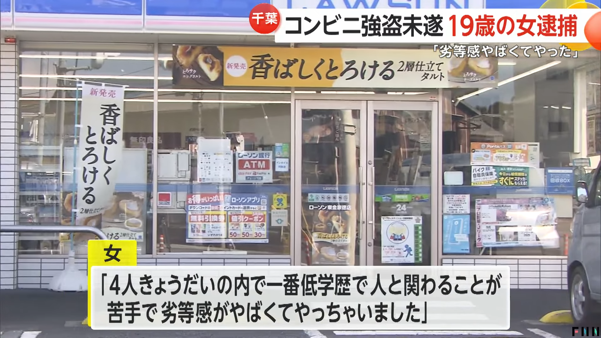 19歳の女、コンビニ強盗未遂の疑いで逮捕「金出すか、通報してくれますか」「劣等感がやばくてやっちゃいました」