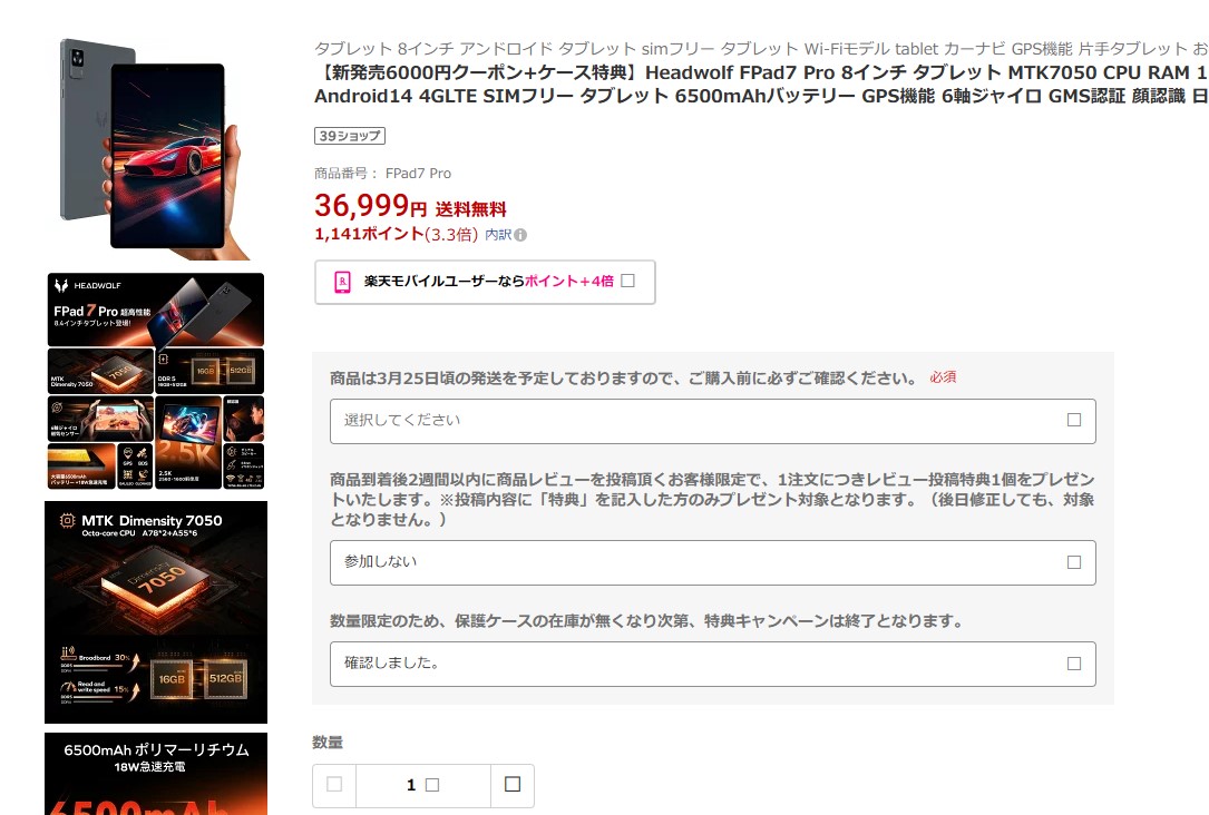 Fpad7の512GB版が、Fpad7 pro(クーポン適応で¥30999)として、限定2000台で出荷予定!