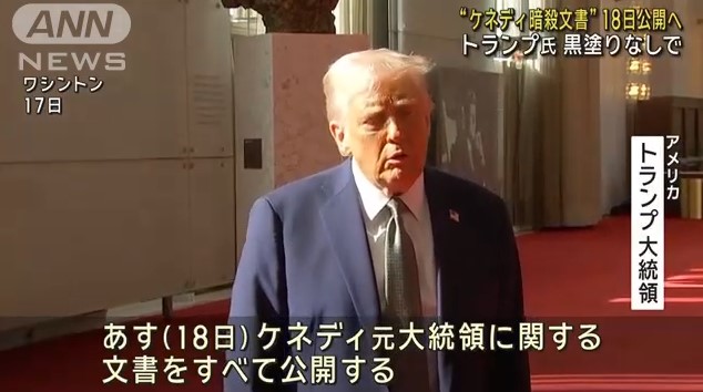 トランプ氏 ケネディ暗殺の文書を編集せずにすべて18日に公開と発表