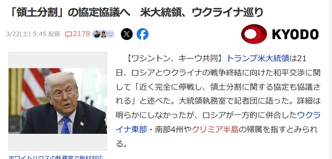 【悲報】アメリカのトランプ大統領、ロシアとウクライナ領土分割協議 力の支配に敗北へ