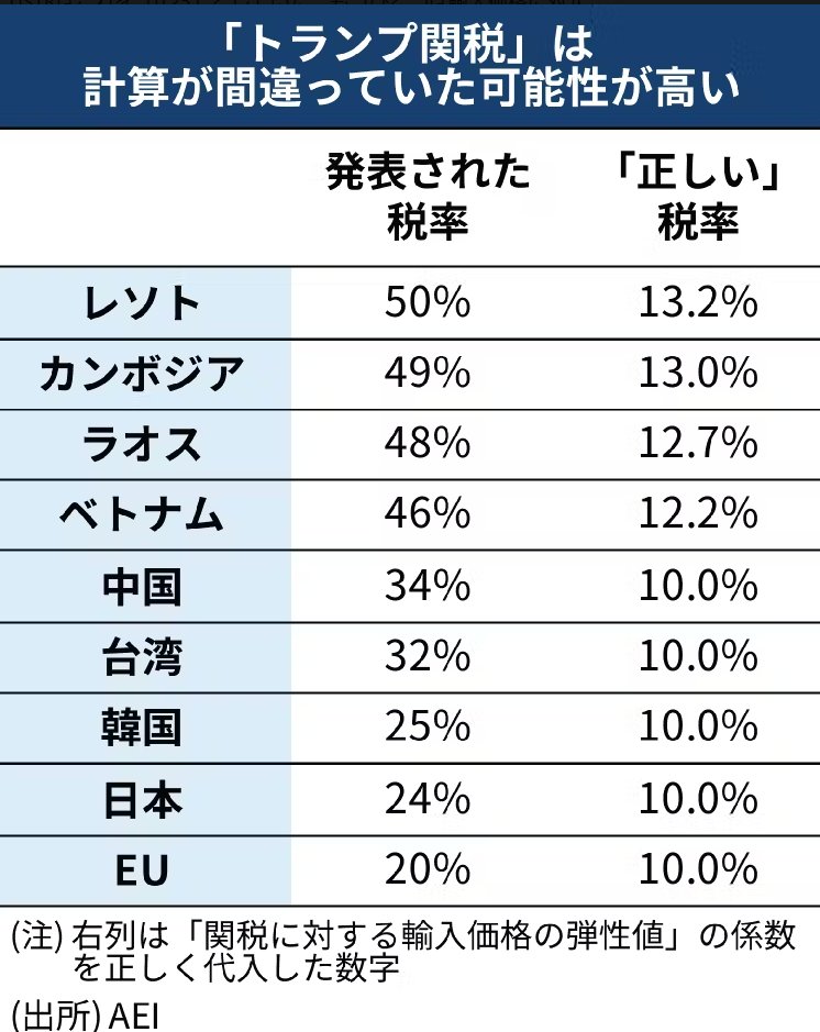 米政権、関税計算で代入ミスか 実際の税率は「4分の1」 – 日本経済新聞