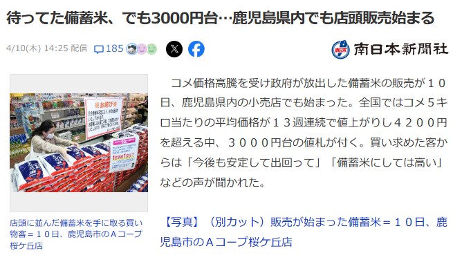 待ってた備蓄米、でも3000円台…鹿児島県内でも店頭販売始まる