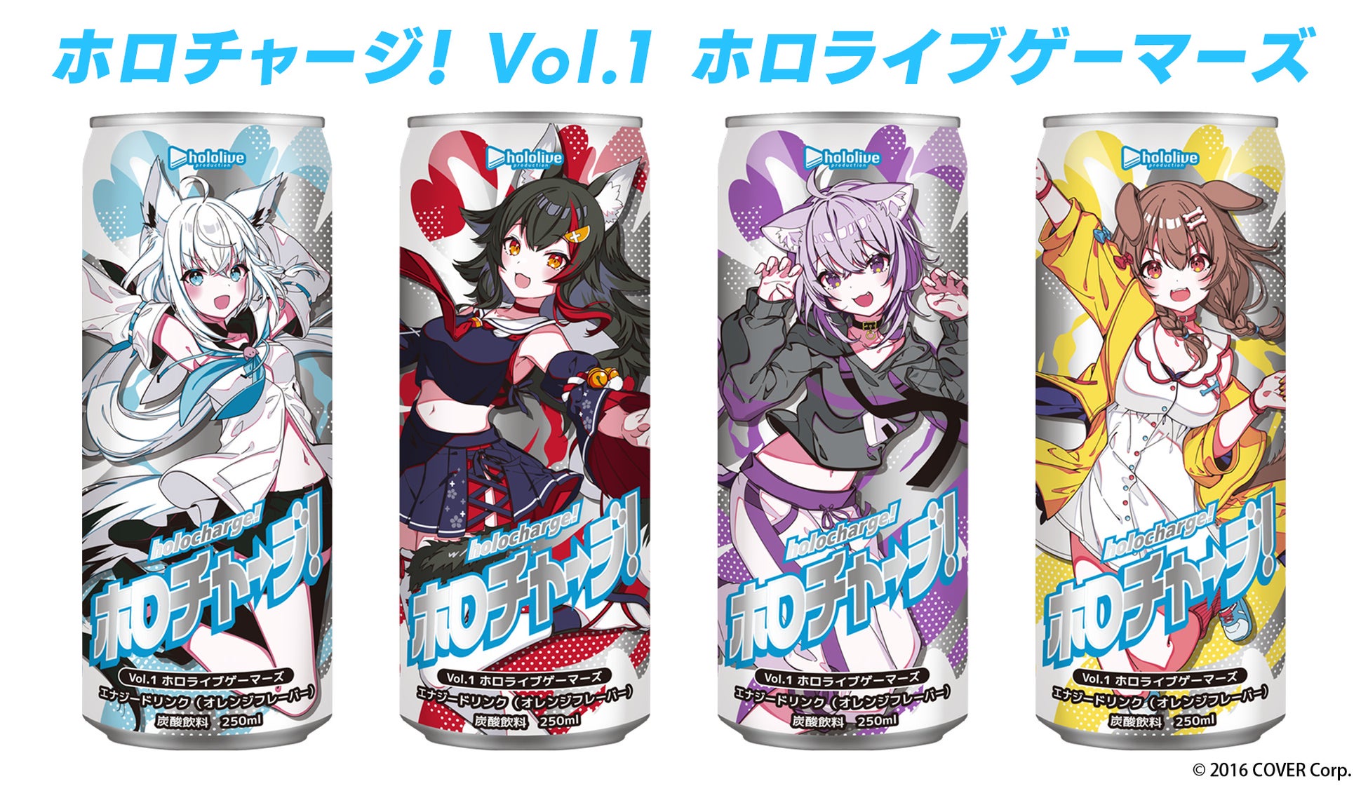 ホロライブのオリジナルエナジードリンクブランド「ホロチャージ!」が4月29日(火)より発売!第一弾にはYouTubeの累計登録者数795万人超の人気VTuberユニット「ホロライブゲーマーズ」が登場