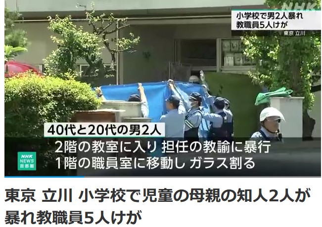 【悲報】東京・立川の小学校に生徒の母親が呼んだ男2人が侵入し暴れる 教職員5人ケガ
