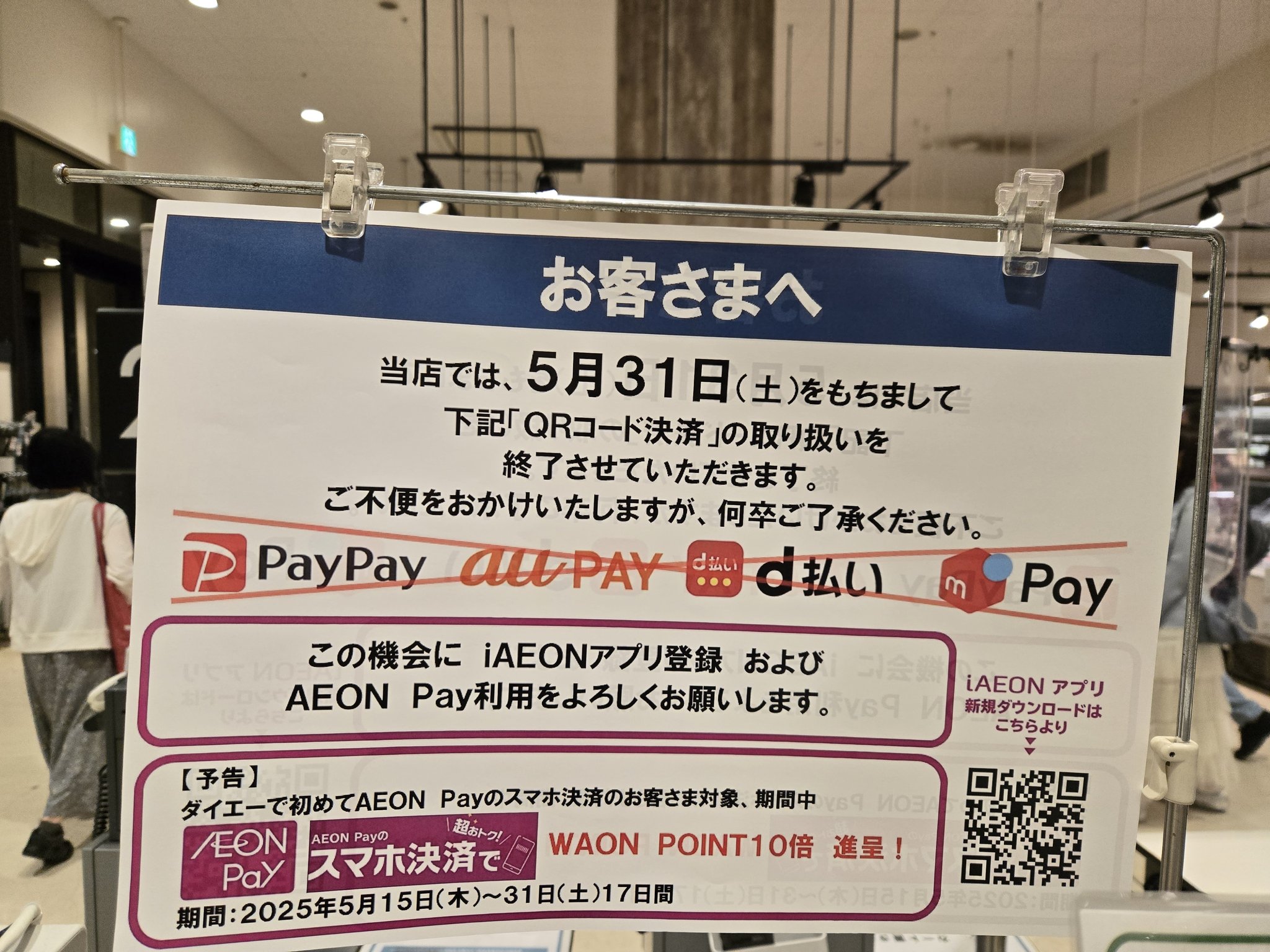 ダイエーやグルメシティ、「PayPay」「au PAY」などのコード決済を5月31日で終了 AEON PayやWAONに集約へ