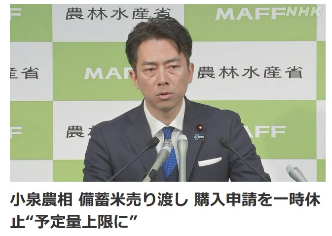 備蓄米 随意契約 小泉農相 応募殺到で受け付け休止 29日にも引き渡しへ | NHK | 物価高騰