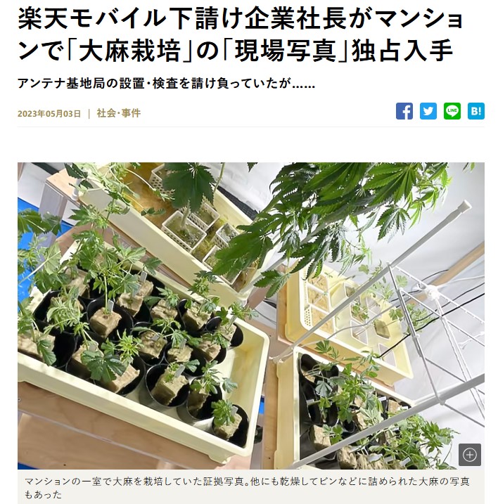 楽天モバイル下請け企業の社長、自宅で大麻栽培して販売か