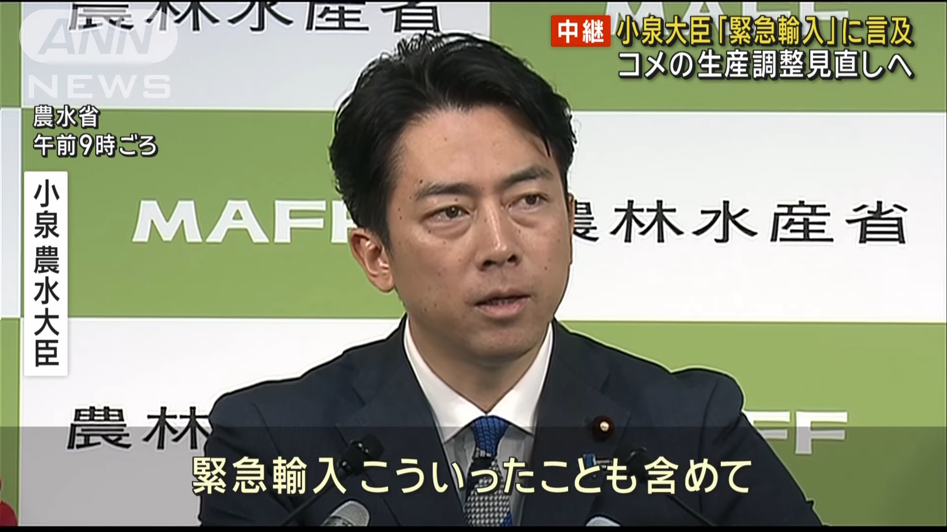 JA・卸売業者「コメ価格は高い状態続く」 小泉進次郎農水大臣「コメ緊急輸入も選択肢。聖域ない」